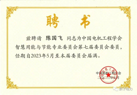質子動力公司董事長陳國飛博士被“中國電機工程學會”聘請為智慧用能與節能專業委員會第七屆委員會委員