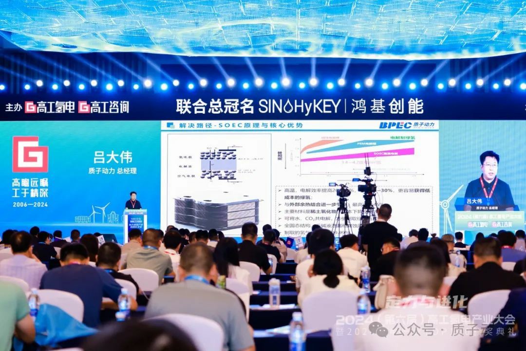 6月18日,2024(第六屆)高工氫電產(chǎn)業(yè)大會,以“定力與進化”為主題,覆蓋氫能制儲運加和燃料電池及下游應用全鏈共設7大專場,5場圓桌對話,超600位行業(yè)精英齊聚一堂,分享產(chǎn)業(yè)熱點、討論關鍵技術,共話發(fā)展走勢。青島質(zhì)子動力科技有限公司(簡稱質(zhì)子動力)總經(jīng)理呂大偉發(fā)表了主題演講,分享《SOEC研發(fā)和產(chǎn)業(yè)化進展》。
